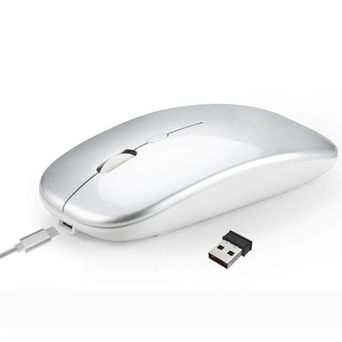 - 1x Ratón Inalámbrico Hxsj M90 2.4Ghz ultrafino silencioso reCargable modo dual Bluetooth para PC Portátil (Plata)