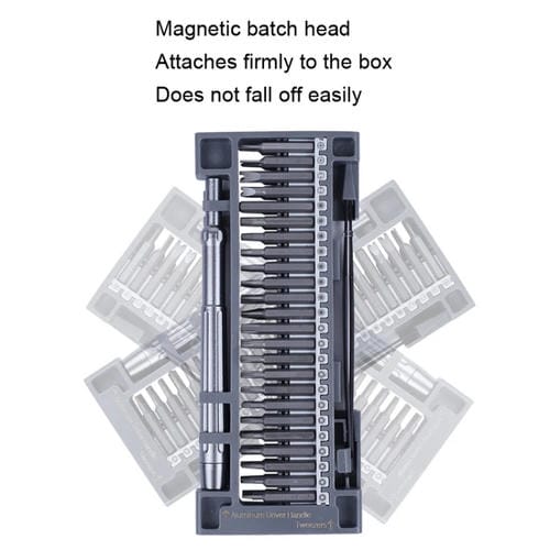 El Juego de Destornilladores 6109A 50 en 1 Reparación (2023) es un Conjunto profesional diseñado para la reparación y desmontaje de dispositivos electrónicos como Teléfonos Móviles y Computadoras. Este Juego incluye 50 puntas intercambiables que permiten abordar una amplia variedad de tornillos y componentes, facilitando tareas de mantenimiento y reparación con precisión. Su diseño incorpora una manija giratoria con interruptor de ajuste superior que mejora el control y la facilidad de uso durante la extracción o instalación de tornillos. Fabricado con aleación de acero S2, ofrece durabilidad y resistencia al desgaste, mientras que sus cabezales magnéticos aseguran una sujeción firme de las puntas, evitando pérdidas accidentales. Este kit es compatible con múltiples marcas y modelos, orientado a usuarios que reparan por cuenta propia o técnicos especializados que requieren herramientas versátiles y confiables.