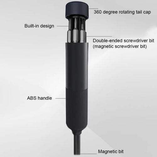 • Contiene 27 puntas de doble punta: PH000, PH00, PH1, PH0, T3, T4, T5, T6H, T7H, T8H, T9H, T10H, -1,5, -3,5, Triángulo 2,3, Triángulo 2,7, Estrella 0,8, Estrella 1,2, Y000, Y1, H1,5, H2,0, U2,3, U2,6, SIM, MID; Tapa Trasera giratoria 360°, diseño de compartimento de almacenamiento oculto