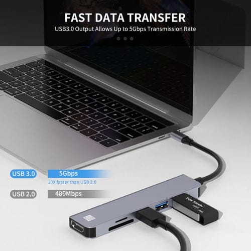 Adaptador Junsunmay 6 en 1 Tipo-C a 4K Estación de Acoplamiento HDMI USB-C Hub Lector de Tarjetas SD/TF