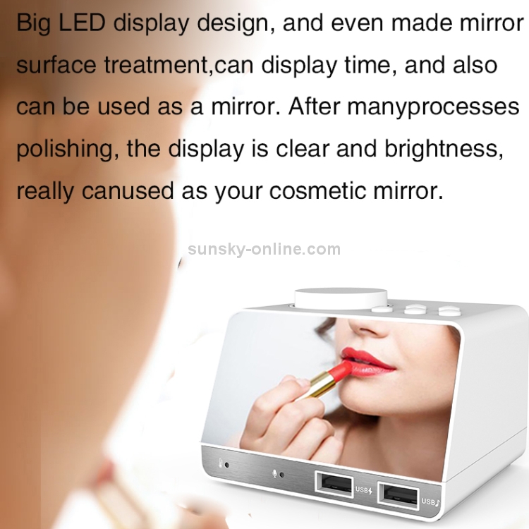 4. Diseño USB dual, puede cargar productos electrónicos e insertar una unidad flash USB para reproducir música al mismo tiempo.