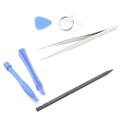 - Incluye destornilladores de ranura (1,5 mm), cruz (1,5 mm), pentalobe (0,8 mm), tres puntas (0,6 mm), pinzas, ventosa, púa de apertura, palo de apertura y dos spudgers