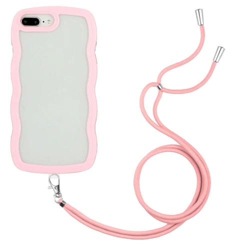 Funda para iPhone 8 Plus y 7 Plus Lanyard Candy Color Wave TPU Clear PC (Rosa)