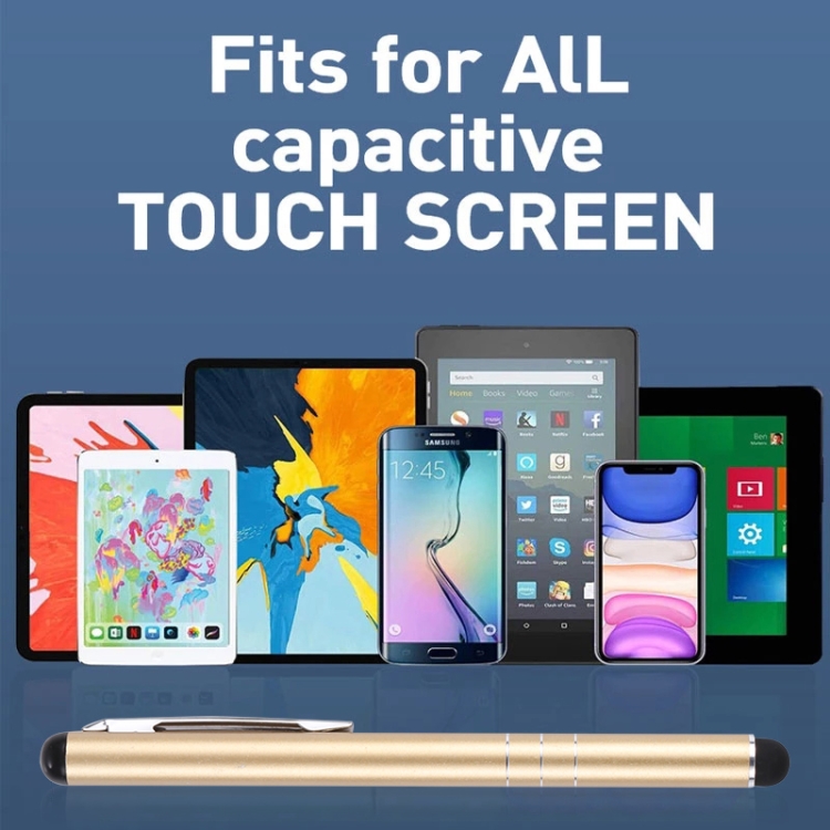 El Lápiz de Escritura Móvil Tres Anillos Universal en color Oro es un accesorio diseñado para ofrecer precisión y comodidad en la interacción con dispositivos Táctiles. Compatible con una amplia gama de dispositivos iOS y Android, este Lápiz Óptico permite escribir, marcar y navegar en Pantalla sin riesgo de daños gracias a su punta suave. Su diseño moderno, pequeño y ligero facilita su transporte y uso en cualquier momento y lugar, con una longitud aproximada de 14 cm que garantiza un manejo ergonómico.