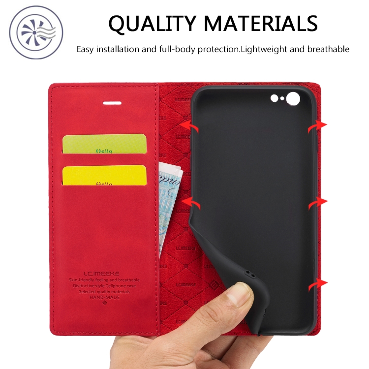 Funda para iPhone 6 / 6S Lc.Imeeke Ultrafina con Tapa Horizontal y Soporte (Rojo)