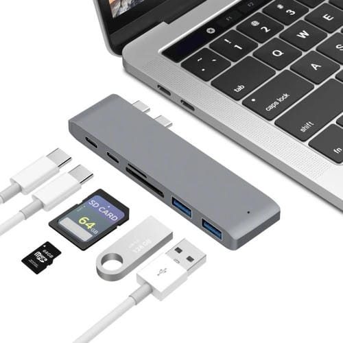 • 1x Lector de Tarjetas y Estación de Acoplamiento USB-C a HDMI 6 en 1 (Gris)