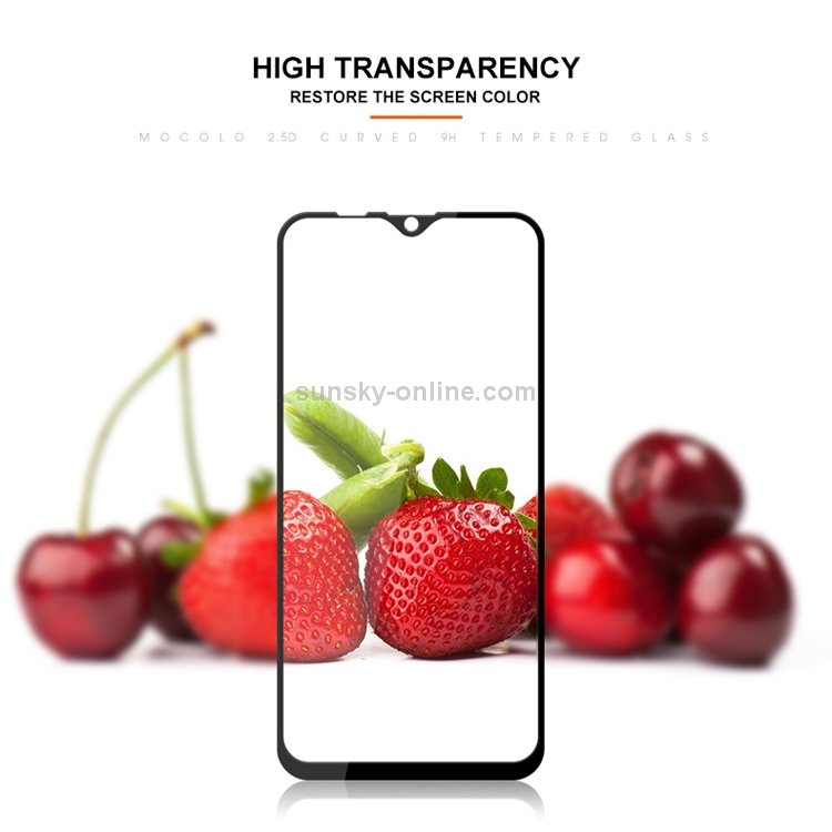 Película de Vidrio Templado Mocolo 0.33mm 9H 2.5D con Estampado de Seda y Pegamento Completo para Galaxy M20 (Negro)