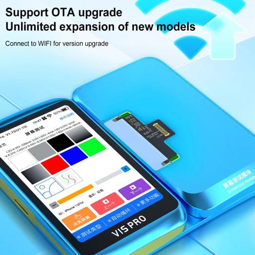 El Módulo de prueba Pantalla JCID MV01 es un dispositivo especializado diseñado para la verificación y diagnóstico de Pantallas compatibles con los modelos de iPhone X hasta iPhone 12 Pro Max. Este Módulo funciona en Conjunto con el programador V1S PRO, utilizando una Conexión WIFI dual 2.4/5G y un sistema de procesamiento de 64 bits con 6 núcleos que permite realizar pruebas rápidas y precisas. Su función principal es facilitar la comprobación de todas las funcionalidades de Pantallas Apple, asegurando la correcta operatividad antes de la instalación definitiva. Además, el Módulo admite actualizaciones OTA para ampliar la compatibilidad con futuros modelos y cuenta con un sistema de Cables Flexibles etiquetados para simplificar su uso en los diferentes dispositivos.