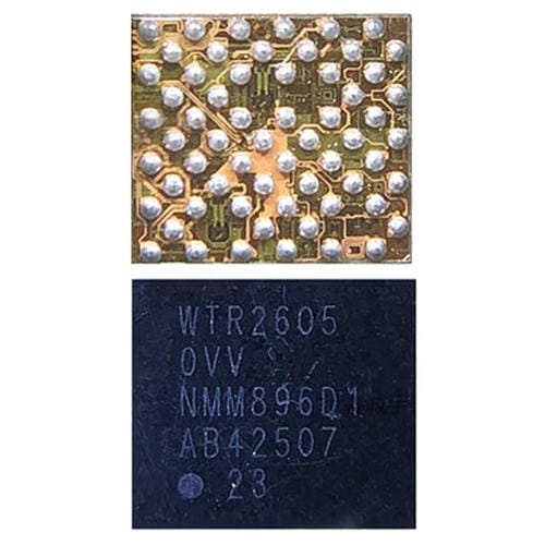 El Módulo IC de frecuencia intermedia WTR2605 es un componente electrónico diseñado para dispositivos Apple, específicamente para iPhone. Su función principal es gestionar la frecuencia intermedia dentro del sistema de comunicaciones del Teléfono, asegurando una correcta modulación y demodulación de Señales para mantener la calidad y estabilidad de la Conexión. Este Módulo IC es un reemplazo directo para unidades dañadas o defectuosas, garantizando un ajuste preciso y funcionamiento óptimo tras su instalación. Se recomienda que la instalación sea realizada por técnicos especializados debido a la precisión requerida en el montaje y manejo de componentes internos del dispositivo.