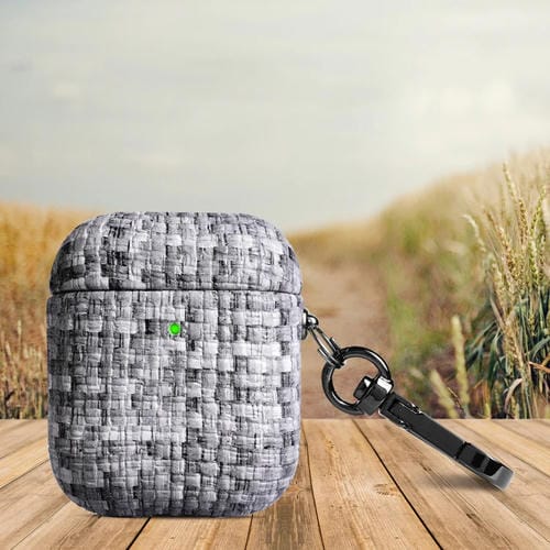 Estuche Protector Para Airpods 1 / 2 Weave Texture Pu A Prueba De Golpes Con Gancho (Gris)