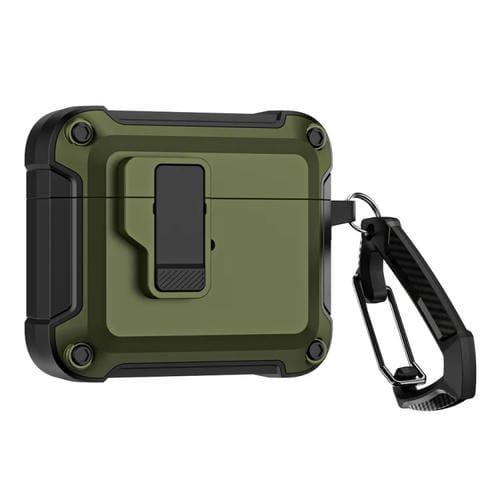 Funda Protectora Airpods 3 TPU + PC para Auriculares Bluetooth con Interruptor y Gancho (Verde Oscuro)