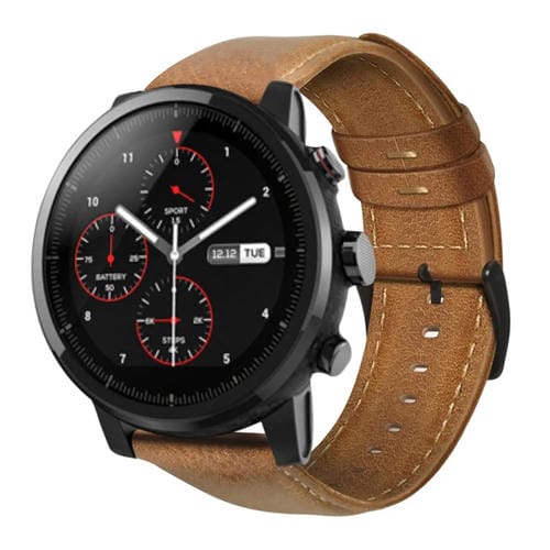 Pour Amazfit 2 Stratos Oil Wax Bracelet de montre en cuir véritable (jaune marron)