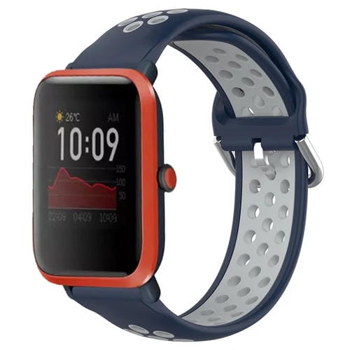 Pour Amazfit Bip 1S 20 mm bracelet de montre en silicone sport respirant perforé (bleu nuit + gris)
