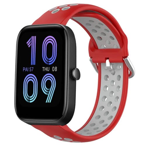 Pour Amazfit Bip3 20 mm bracelet de montre en silicone sport respirant perforé (rouge + gris)