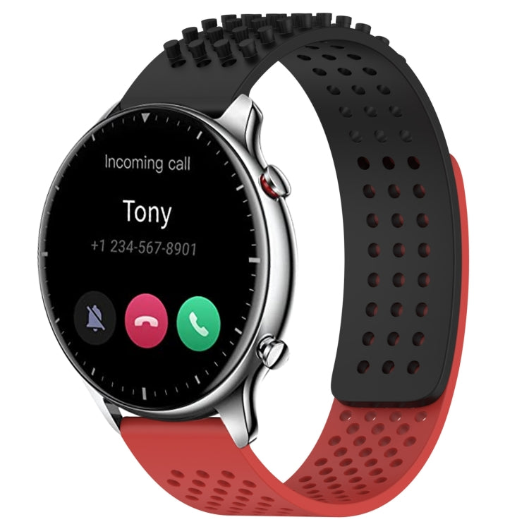 Correa de Silicona para Amazfit GTR 2 con Puntos 3D Transpirables y Orificios 22mm (Negro + Rojo)