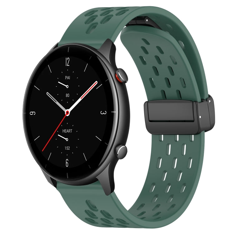 Correa de Silicona para Amazfit GTR 2E con Cierre Magnético Plegable 22mm (Verde Oscuro)