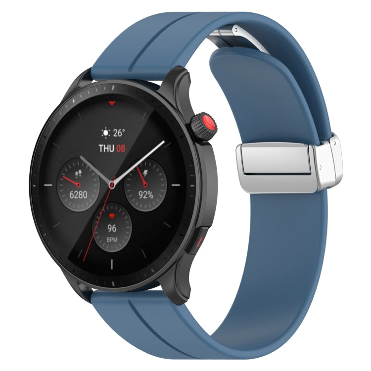 Correa de Silicona para Amazfit GTR 4 con Cierre Plegable Magnético y Hebilla Plateada (Azul)