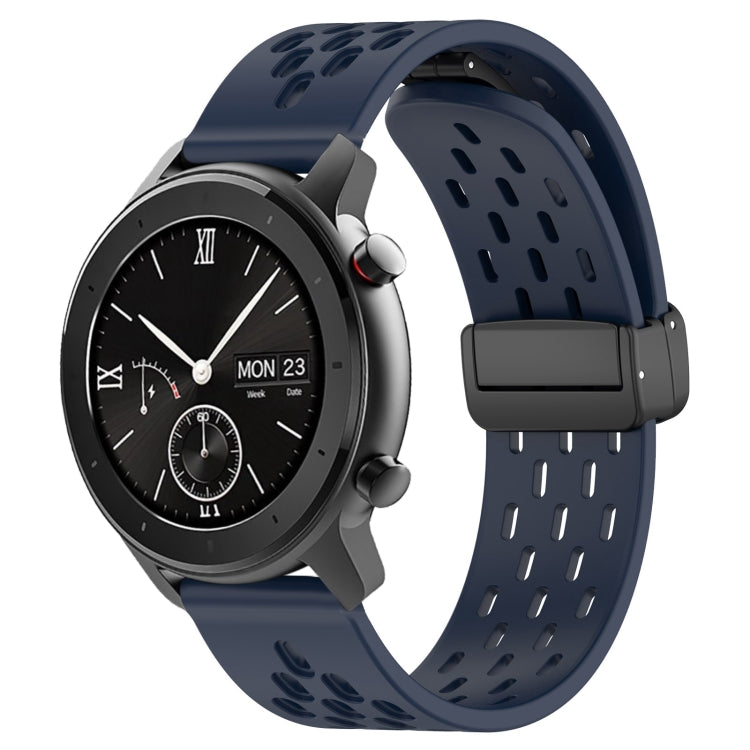 Pour bracelet de montre en silicone Amazfit GTR 42 mm 20 mm avec fermoir magnétique pliant (bleu nuit)