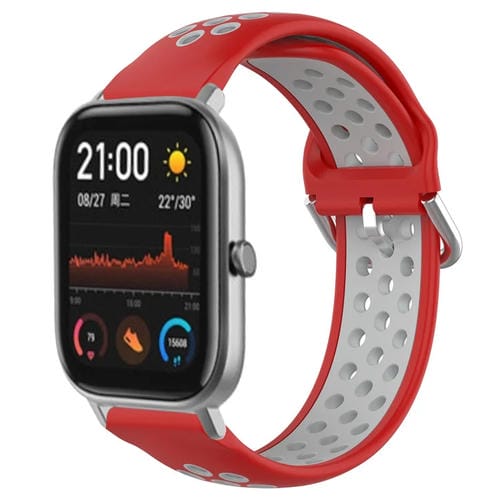 Pour Amazfit GTS 20 mm bracelet de montre en silicone de sport respirant perforé (rouge + gris)
