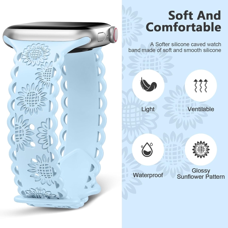 Correa de Silicona para Apple Watch SE 2023 44mm con Relieve Girasol (Azul Claro)