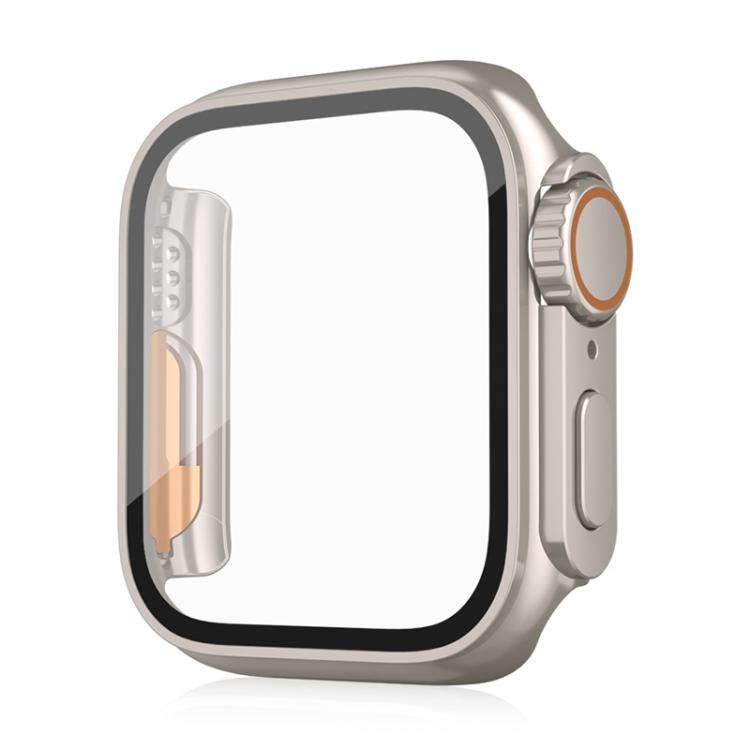Para Apple Watch Series 9/8/7 de 41 mm xDfind Cambiar a Ultra 49 mm Película de vidrio templado Cubierta de reloj de PC integrada (Titanio + Naranja)