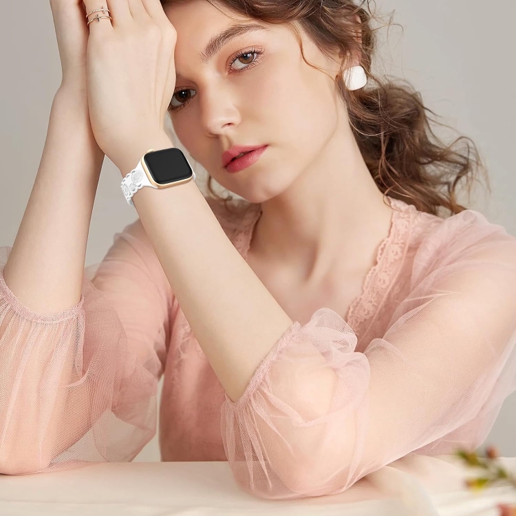 Correa de Silicona para Apple Watch Series 9 41mm con Relieve de Girasol (Blanco)