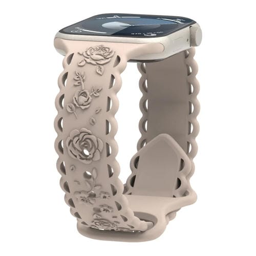 Correa de Silicona para Apple Watch Series 9 41mm con Relieve de Rosa 3D (Té con Leche)