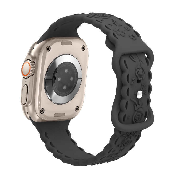 Correa de Silicona para Apple Watch Ultra 2 con Relieve de Rosa 3D y Encaje de 49mm (Negro)