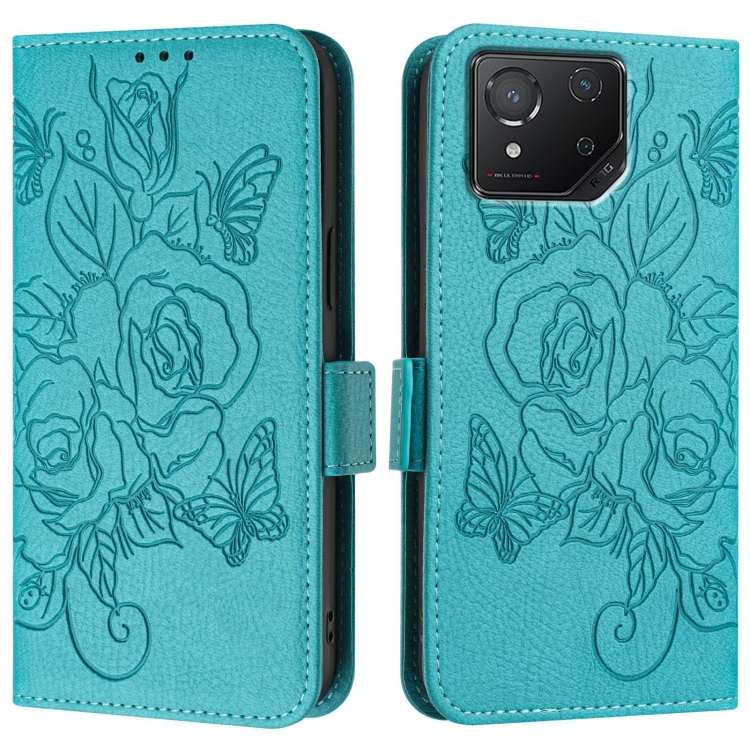 Funda de Cuero Antirrobo RFID para Asus Rog Phone 8/8 Pro con Relieve Rosa (Azul Claro)