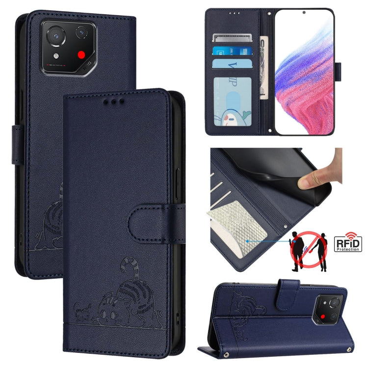 Estuche para Asus Rog Phone 8 de Cuero con RFID, Patrón en Relieve y Cordón (Azul)
