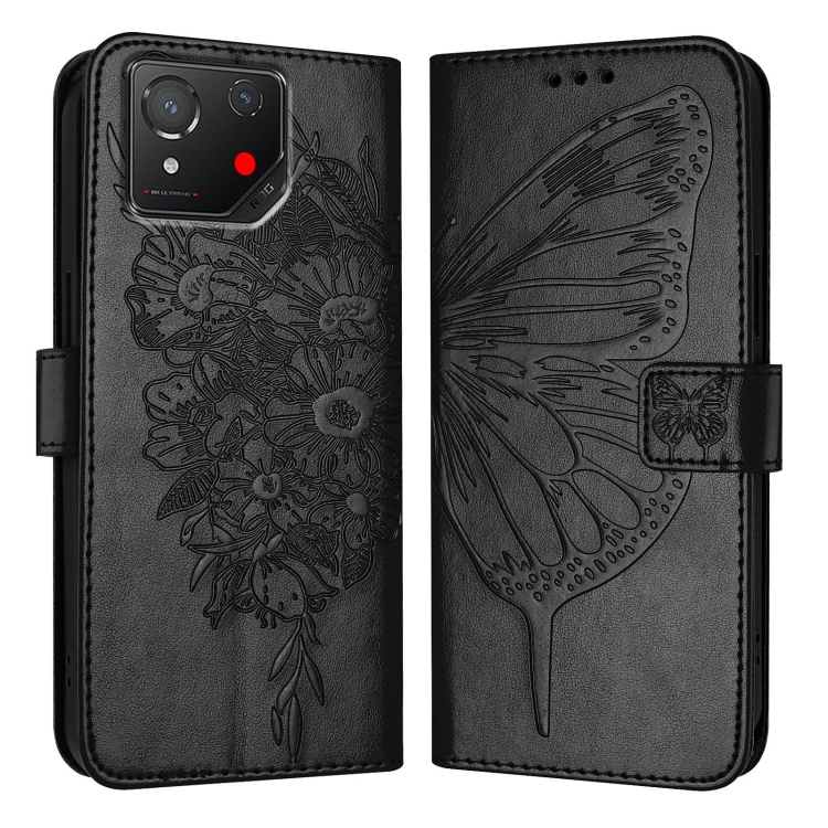 Funda de Cuero para Asus Rog Phone 8 con Mariposa en Relieve (Negro)