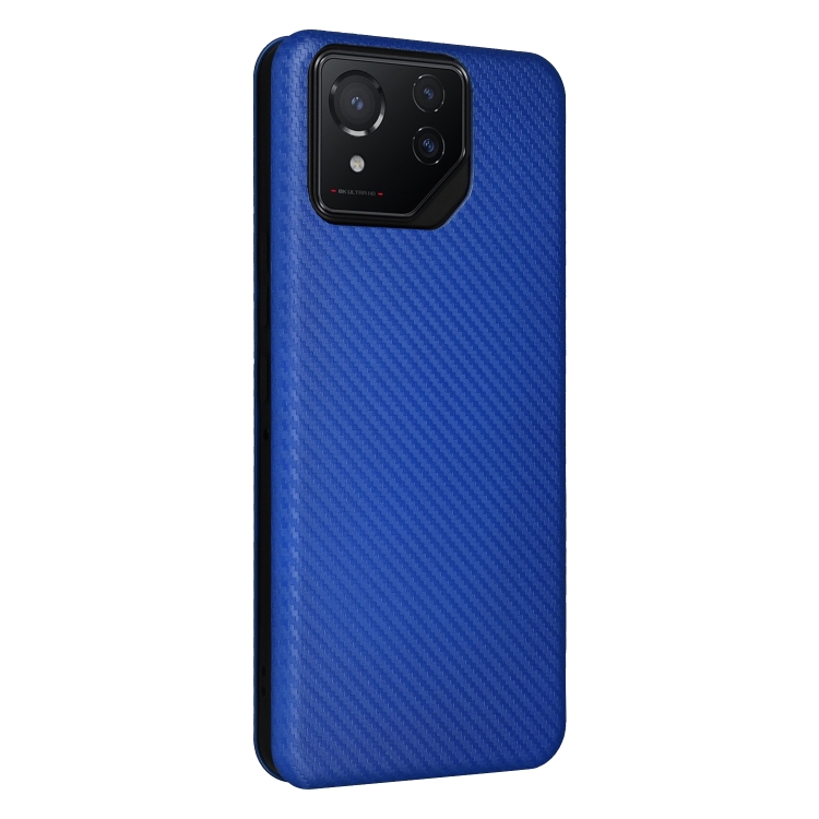 Funda de Cuero con Tapa para Asus Rog Phone 8 con Textura de Fibra de Carbono (Azul)