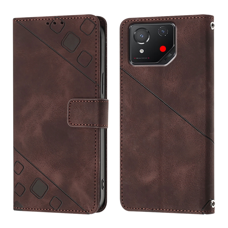 Funda de Cuero Skin Feel para Asus Rog Phone 8 en Relieve (Marrón)