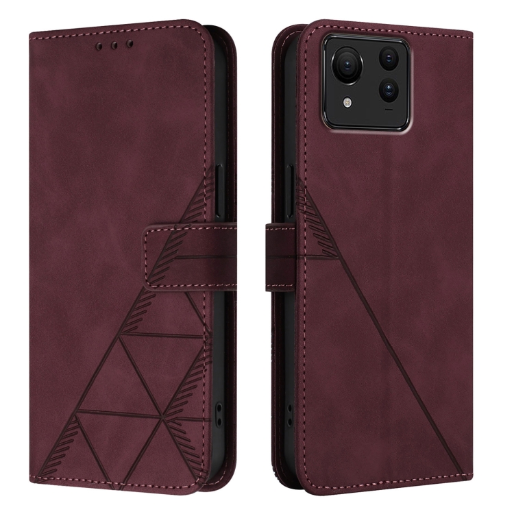Funda Crossbody para Asus Zenfone 11 Ultra de Cuero con Tapa en Relieve 3D (Rojo Vino)