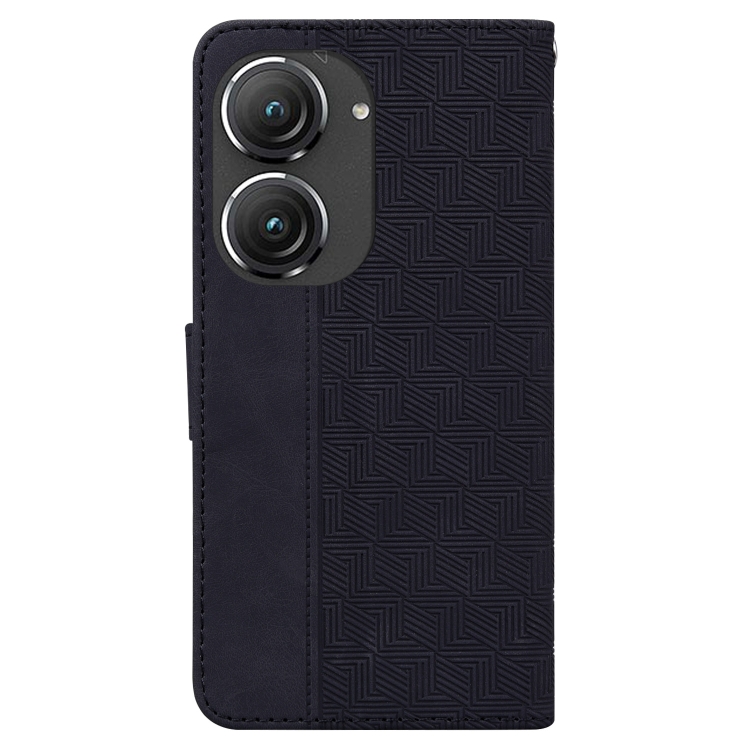 Estuche de Cuero para Asus Zenfone 9 con Tapa en Relieve Geométrico (Negro)