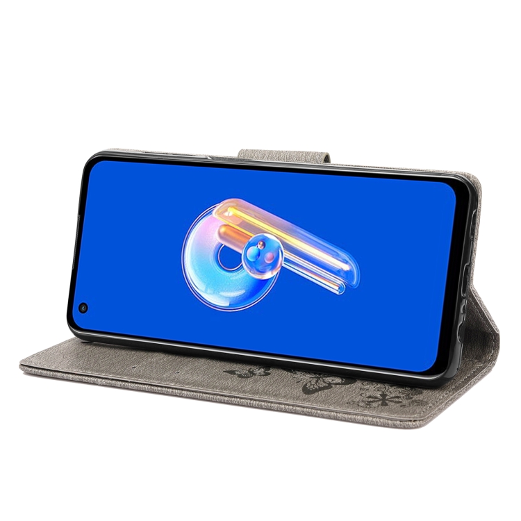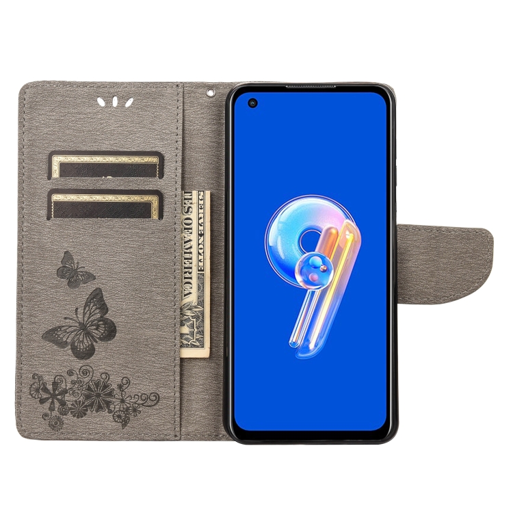 Estuche para Asus Zenfone 9 de Cuero con Tapa Horizontal en Relieve de Mariposa (Gris)