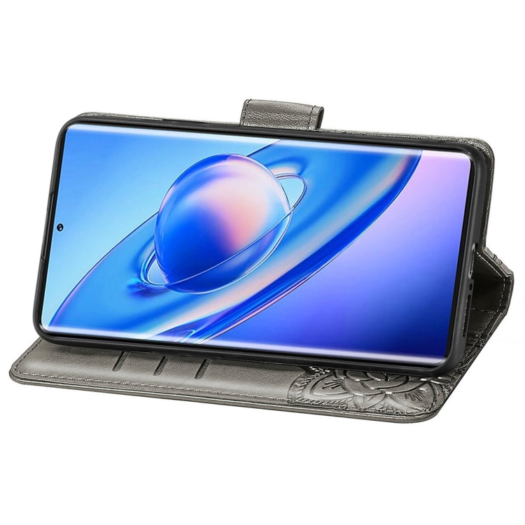Funda de Cuero en Relieve para BlackView A200 Pro Butterfly Love Flower (Gris)
