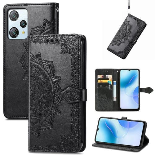 Funda para BlackView A53 Mandala Flower Caja de Teléfono Cuero en Relieve (Negro)
