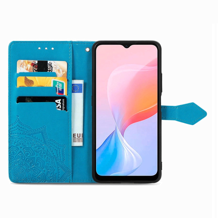 Funda de Cuero en Relieve Mandala Flower para BlackView A85 (Azul)