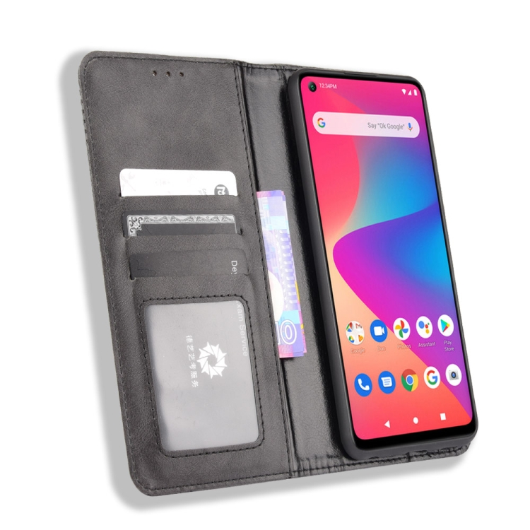 Funda de Cuero Blu G91 Hebilla Magnética Retro Crazy Horse Texture Horizontal Flip con Soporte y Tarjetero (Negro)