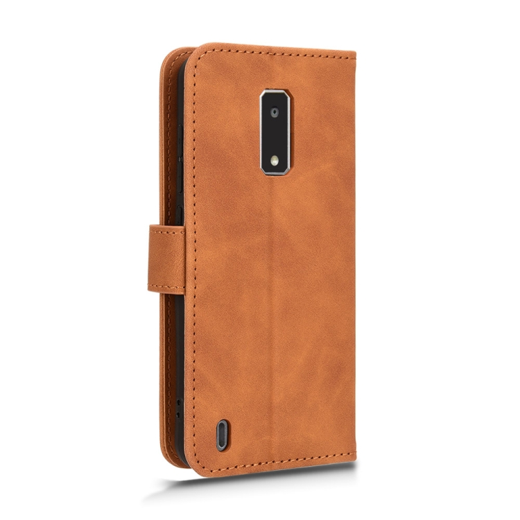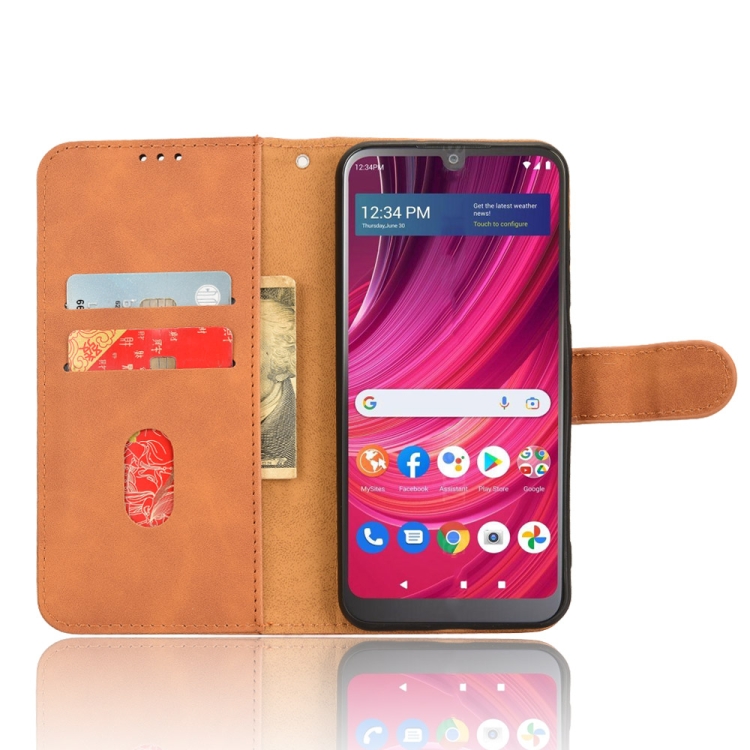 Funda de Cuero con Tapa Magnética para BLU View 4 Skin Feel (Marrón)