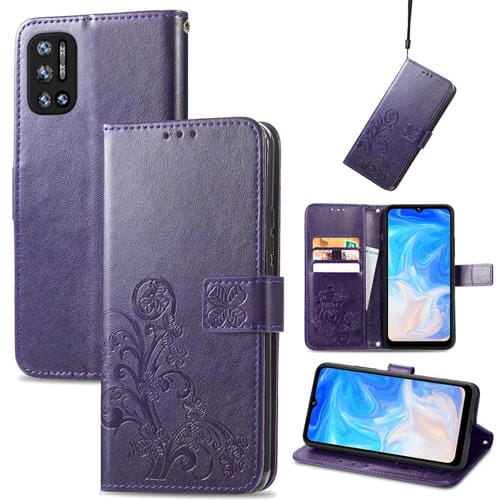 Funda Cuero Doogee N40 Pro Cuatro Hojas con Cordón y Tarjetas (Purple)