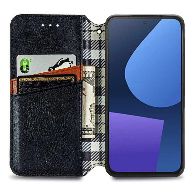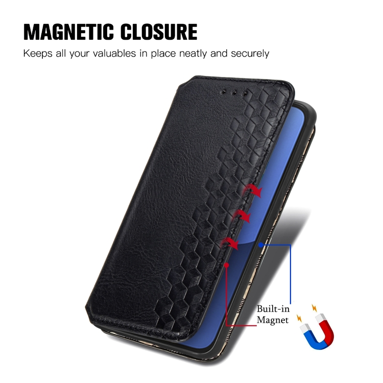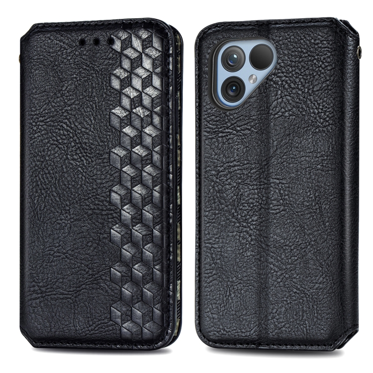 Funda de Cuero Magnético Prensado para Fairphone 5 Cubic Grid (Negro)