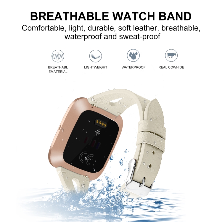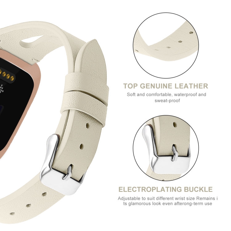Correa de Cuero para Fitbit Versa 2 Medio Apertura (Blanco Cremoso)