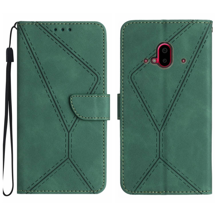 Funda de Cuero para Fujitsu Arrows F-52B con Costuras en Relieve (Verde)