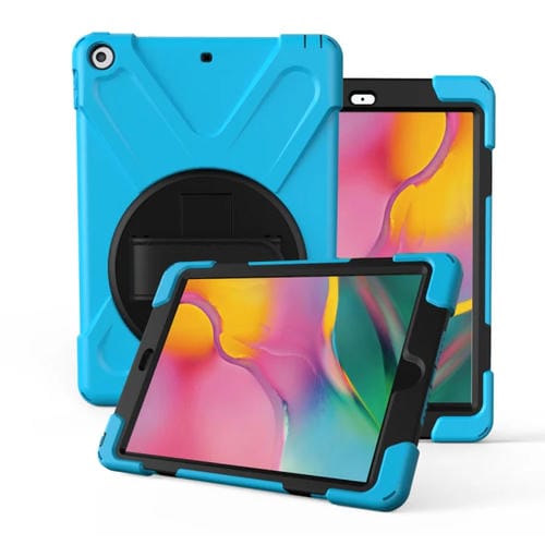 Pour Galaxy Tab A 8.0 (2019) T290 / T295 Rotation à 360 degrés PC + Étui de protection en silicone avec support et dragonne (bleu clair)