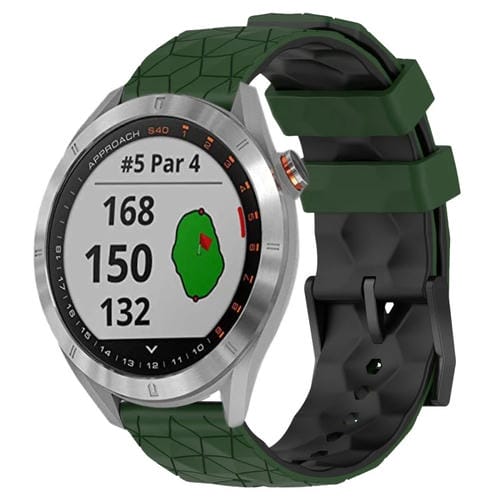 Banda de Reloj Garmin Approach S40 20mm Silicona Dos Colores Patrón Fútbol (Verde Militar + Negro)