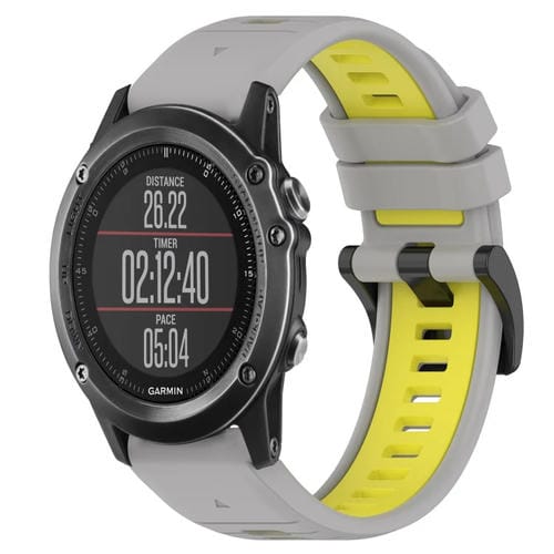 Pour Garmin Fenix ​​​​​​3 HR 26 mm Sports Bracelet de montre en silicone bicolore (gris + jaune)