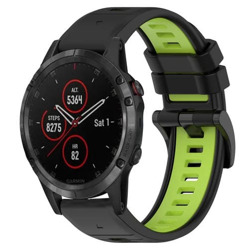 Pour Garmin Fenix ​​​​​​5 Plus 22 mm Sports Bracelet de montre en silicone bicolore (noir + vert citron)