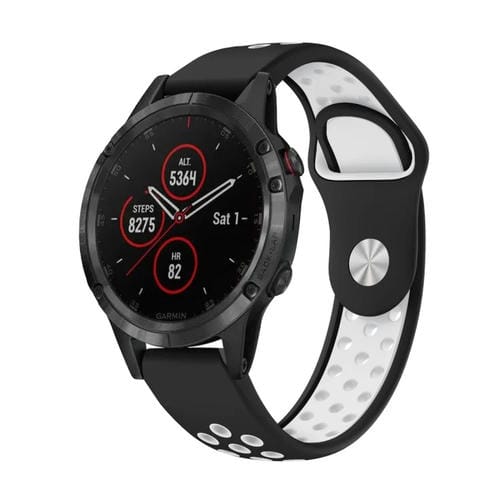 Pour Garmin Fenix ​​​​5 Plus 22 mm Sports Bracelet de montre en silicone respirant (noir + blanc)